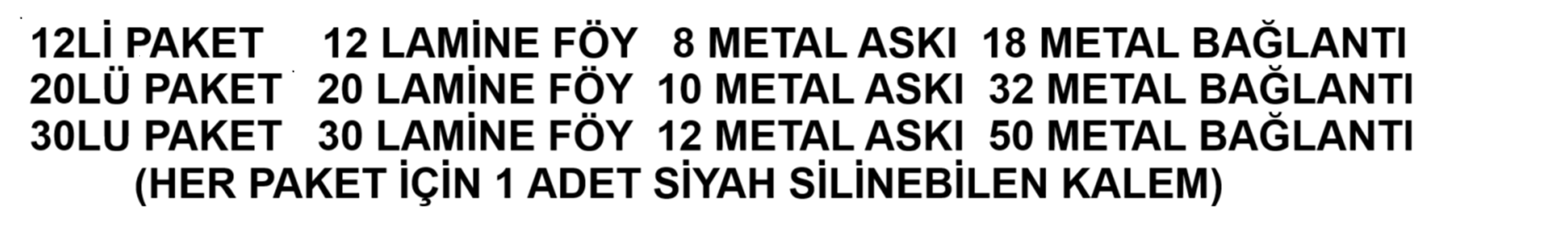 PVC LAMİNASYON EMLAK FÖYLERİ, VİDALI METAL ASKILI OLUP KULLANICININ MİSİNA, ZİNCİR YA DA PİYASADAN BULABİLECEĞİ VANTUZLAR GEREKMEDEN METAL ARKASI YAPIŞKANLI ASKILARLA ASABİLECEĞİ HAZIR FÖYLERDİR. ÜZERİNE SİYAH KALEMLE YAZILIP SİLİNEBİLEN BU EMLAK FÖYLERİ SÜREKLİ OLARAK STOKLARIMIZDA VARDIR. AYNI GÜN YA DA ERTESİ GÜN KARGO İLE GÖNDERİM VARDIR. TRENDYOL’DA DA SATICI İSMİ ; ETİKETLİK FİYATLIK OLARAK TEMİN EDİLEBİLİR. GENELDE 12, 20 VE 30 ADET OLARAK SATILAN ÇERÇEVELERİN PAKETİ SIRASI İLE 3X4 – 4X3 , 4X5 – 5X4 VE 5X6 – 6X5 DÜZENEĞİ ŞEKLİNDEDİR. BUNA GÖRE ;